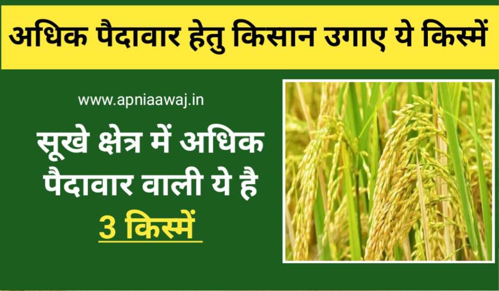 अधिक पानी की आवश्यकता के कारण धान की कई स्थानों पर रुपाई कर पाना मुश्किल हो जाता है, ऐसे में कृषि वैज्ञानिकों द्वारा अनेक प्रकार की धान की उन्नत किस्में निजात की गई है, जिसमें पानी की मात्रा काफ़ी कम जरूरत पड़ती है, यानि अब कम पाणी यानि सूखे क्षेत्र में भी धान की बुवाई की जा सकती है, तो किसान भाइयों आज के लेख में हम जानेंगे सूखे क्षेत्र की टॉप 3 धान की उन्नत किस्में एवम् उससे संबंधित संपूर्ण जानकारी।